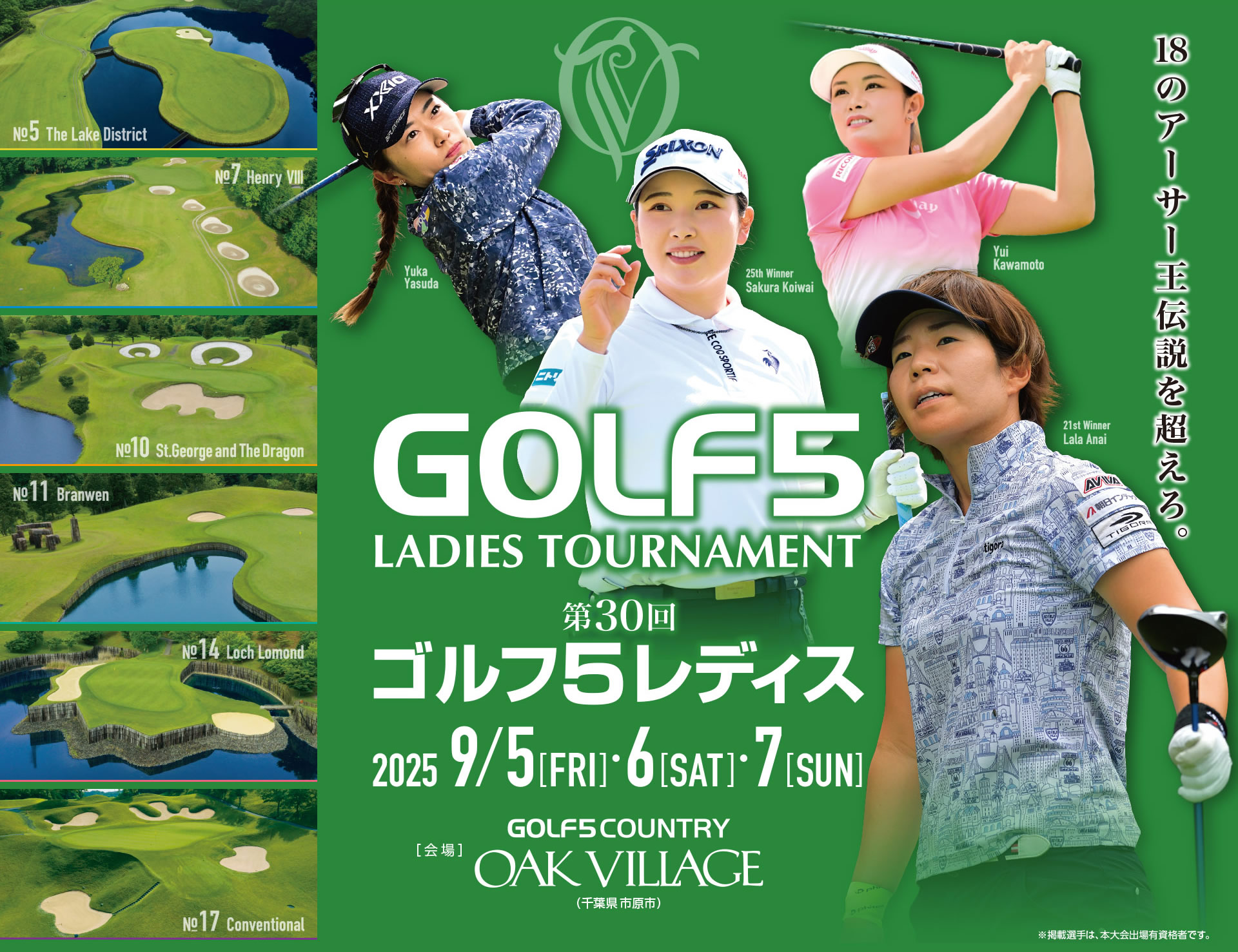 2025年9月5日から9月7日まで、千葉県のゴルフ5カントリーオークビレッヂにて、「第30回ゴルフ5レディスプロゴルフトーナメント」が開催されます。本大会では、日本屈指の難コースに挑む女子プロゴルファーたちの熱戦が繰り広げられます。ぜひ会場にお越しいただき、選手たちへの温かいご声援をお願いいたします。