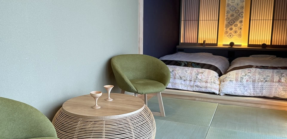 美唄コース内に待望の宿泊キャビンが登場! 1棟3名様まで貸し切り。和の趣を大切にした空間で、静寂と安らぎに包まれる特別なひとときをお過ごしいただけます。