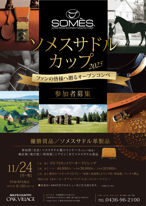 今回、ソメスサドル様にご協力いただき、オープンコンペを開催する事となりました。ソメスサドルファンの方だけでなく、競馬や乗馬好きの方にもおすすめです。