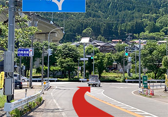 1白鳥ICを下りて道なりに直進、突き当りを右折、「高山・白川郷」方面へ