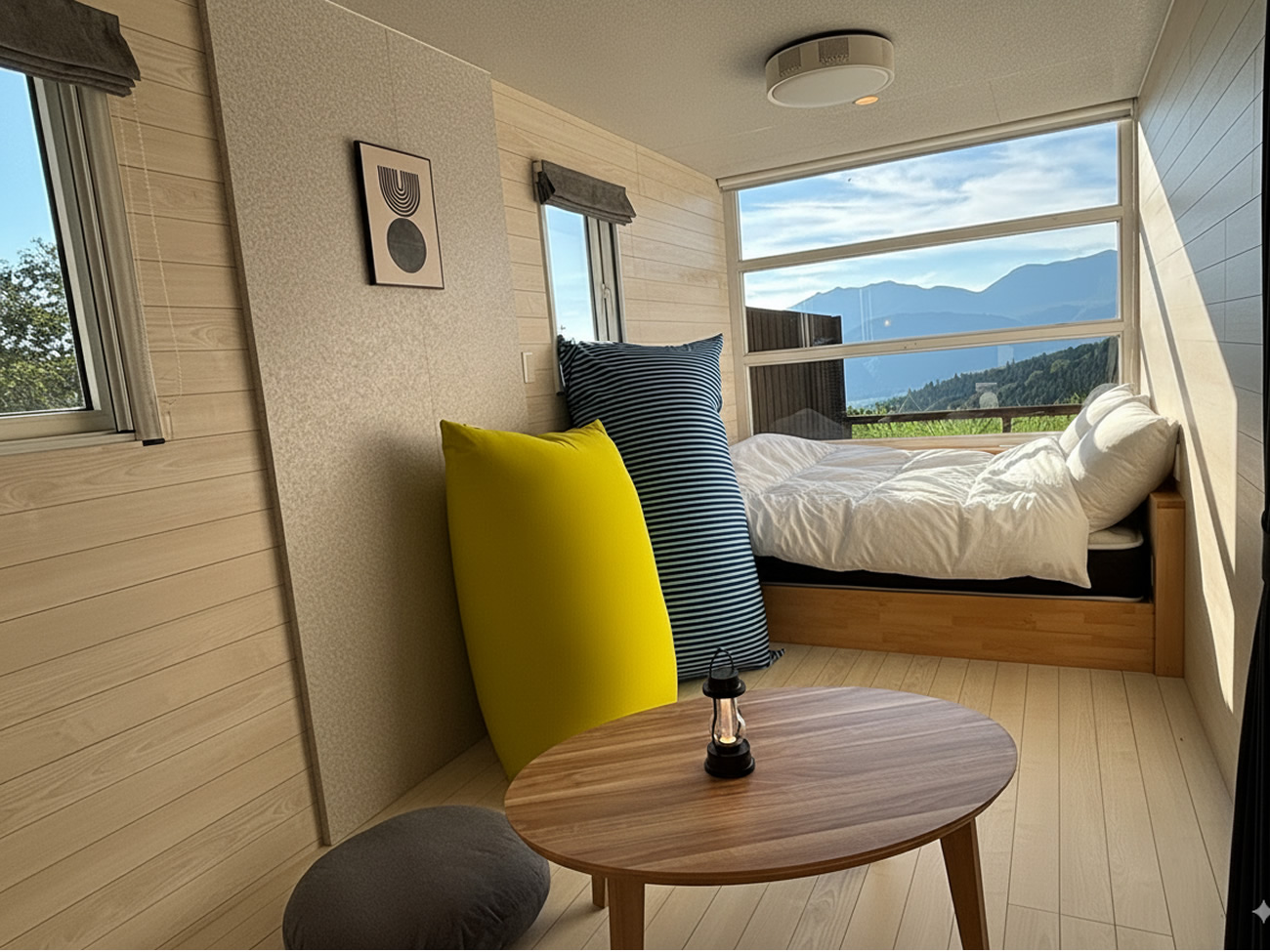 大自然に囲まれたスキー場の中に誕生する、ふたりだけの特別なグランピング空間。 室内にはプロジェクターを完備。お好きな映像を投影しながら、非日常の時間をお楽しみください。 小型犬同伴OKなので、愛犬と一緒のご滞在も可能です。夏は大日ヵ岳トレッキングなど自然・アクティビティ・癒しがそろう特別な空間で、ここでしか味わえない滞在をぜひご体験ください。