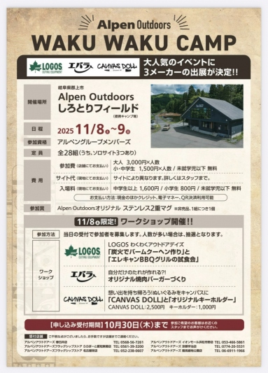 大人気イベント「Alpen Outdoors WAKU WAKU CAMP」開催決定!